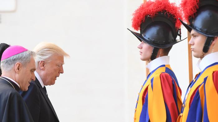 L’incontro è durato in tutto 40 minuti. Trump, che durante il corteo all’uscita ha conversato col prefetto della Casa pontificia mons. Georg Gaenswein, va a colloquio con il segretario di Stato, il cardinale Pietro Parolin, e con il segretario per i Rapporti con gli Stati, monsignor Paul Richard Gallagher.