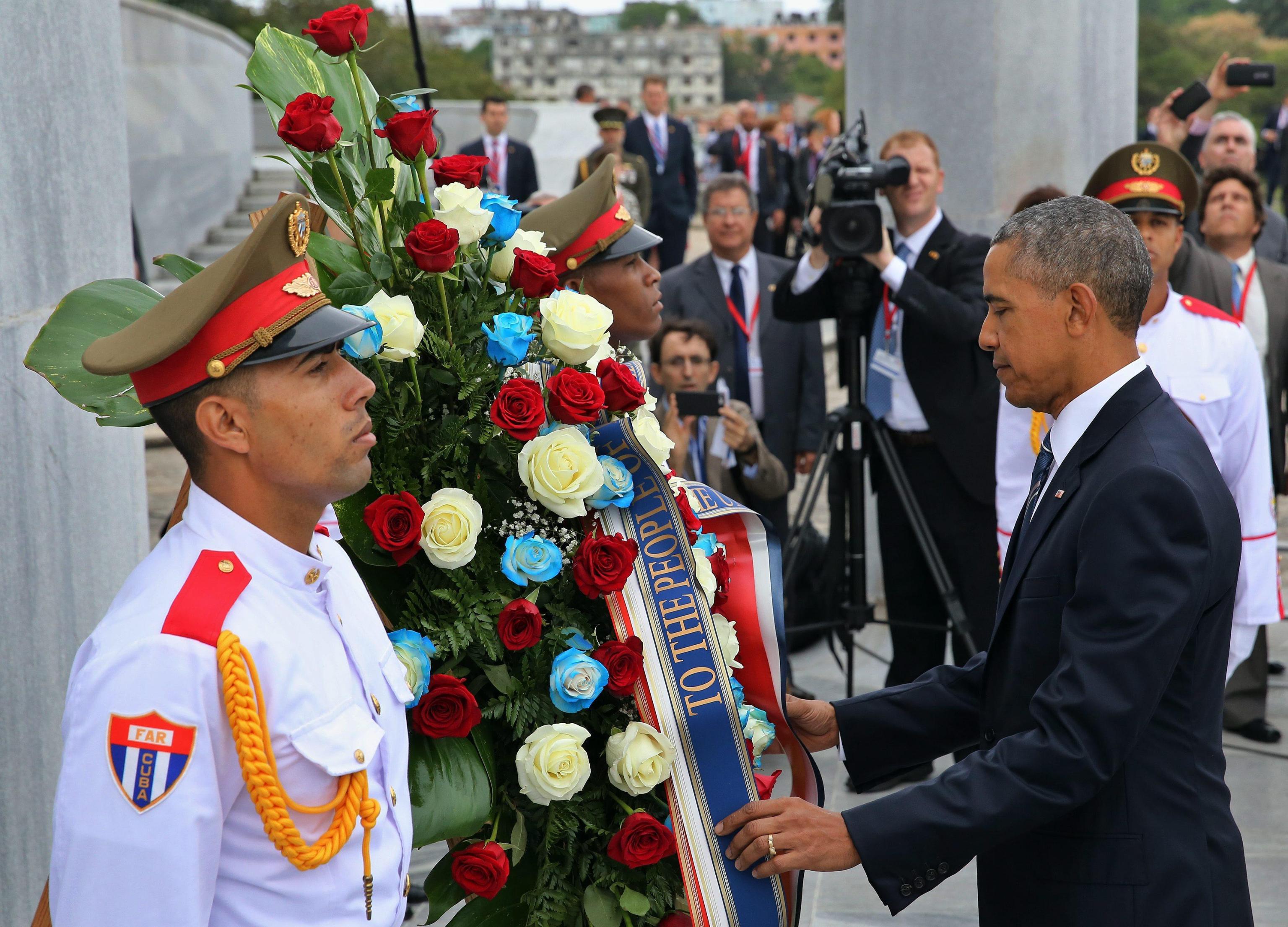 Prima di andare al Palazzo della Rivoluzione Obama ha reso omaggio in piazza della Rivoluzione a José Martì, eroe dell’indipendenza cubana, deponendo una corona di fiori. Il cerimoniale prevede un faccia a faccia di un’ora e mezzo e poi bilaterale allargato di quasi un’ora tra Obama e Castro.
