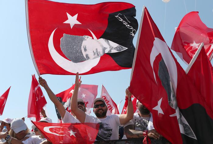 ISTANBUL – Centinaia di migliaia di persone sono scese in piazza a Istanbul per la manifestazione che conclude la “marcia per la giustizia” partita 25 giorni fa dalla capitale turca Ankara per iniziativa del partito Chp, principale forza di opposizione al presidente Recep Tayyip Erdogan. “Questo 9 luglio è un primo passo e una rinascita per la Turchia”, ha detto Kemal Kilicdaroglu leader di Chp accolto da un tripudio di vessilli turchi e bandiere con il volto di Ataturk.