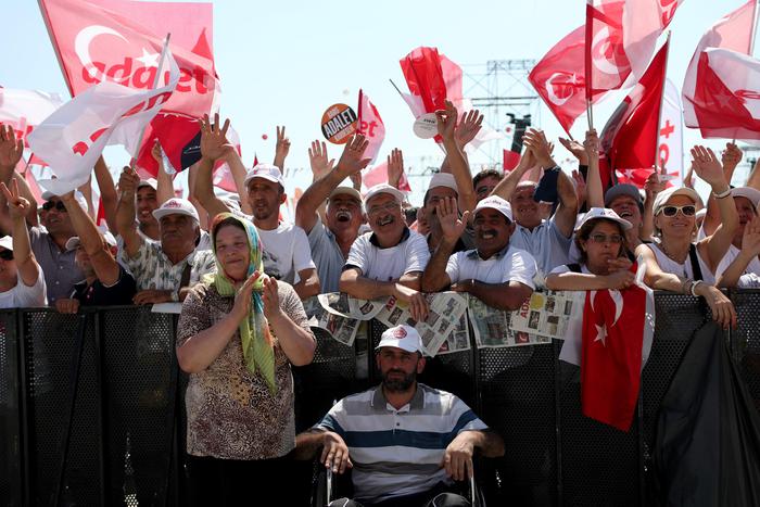Una distesa umana si stagliava lungo il mar di Marmara, nella grande piazza di Maltepe, ultima tappa dei 430 km della marcia per la giustizia. Lì, all’indomani dell’arresto del deputato del partito socialdemocratico Chp, Enis Berberoglu, era partito il cammino di protesta della prima forza di opposizione al presidente Recep Tayyip Erdogan. Un’iniziativa che passo dopo passo si è trasformata in una “marcia per i diritti di tutti, anche di quelli che oggi non sono qui”.