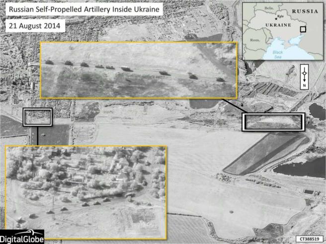 KIEV – La Russia ha sconfinato nel territorio ucraino: lo dice la Nato che ha diffuso nuove foto satellitari che mostrano forze armate russe impegnate in operazioni militari all’interno del territorio ucraino. Le immagini, scattate qualche giorno fa, fanno vedere lo sconfinamento di un convoglio di unità d’artiglieria pesante all’interno della campagna ucraina, nell’area di Krasnodon.