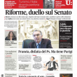 La prima pagina di La Repubblica: “Renzi a Grasso: sul Senato non mollerò”.