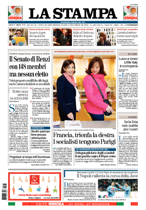 La Stampa: “Il Senato di Renzi con 148 membri ma nessun eletto”.