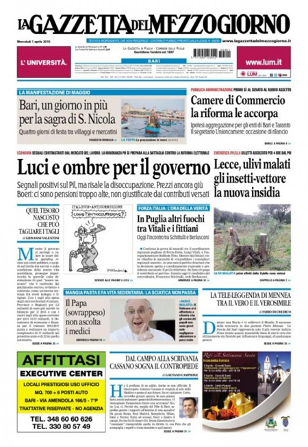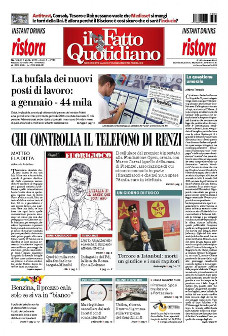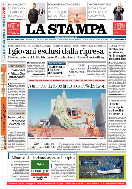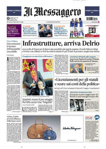 ROMA – I giornali di oggi, mercoledì 1 aprile, hanno notizie diverse in apertura. C’è chi apre con i nuovi dati Istat sulla disoccupazione, risalita a febbraio dopo il calo del mese precedente. Altri annunciano la decisione di Renzi di voler nominare Graziano Delrio come nuovo Ministro delle Infrastrutture in sostituzione di Lupi.