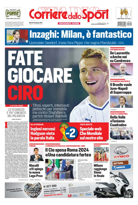 I quotidiani sportivi iniziano a discutere su chi sia meglio far giocare nell’Italia per la prima partita dei mondiali di sabato prossimo. Il ballottaggio è Balotelli-Immobile.