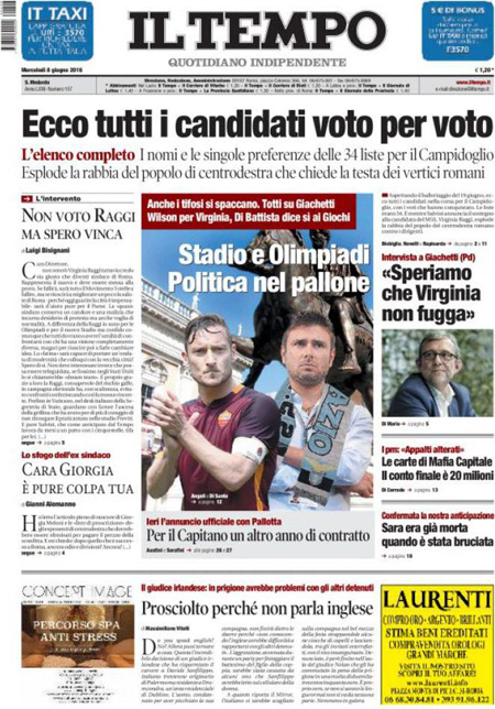 ROMA – Queste le prime pagine dei giornali di mercoledรฌ 8 giugno. La prima pagina de La Stampa: “Caccia ai voti per i ballottaggi”. La prima pagina del Corriere della Sera: “Voti e ballottaggi, รจ subito scontro Pd-Cinque stelle”. La prima pagina de La Repubblica: “Renzi, strappo con Verdini. Il voto dei giovani per M5s”.