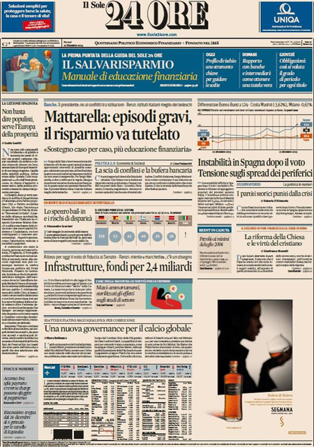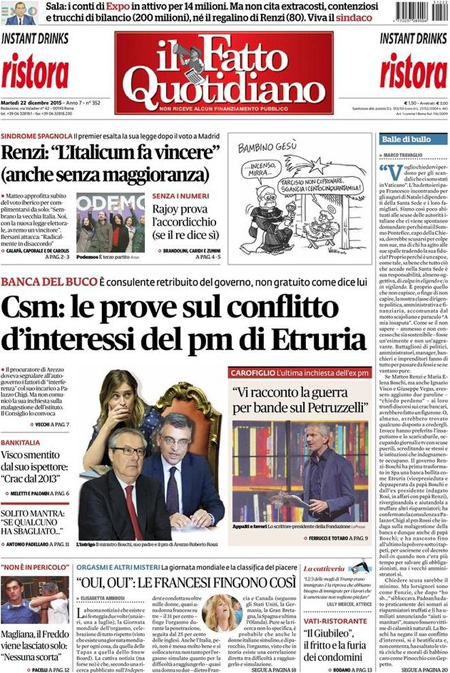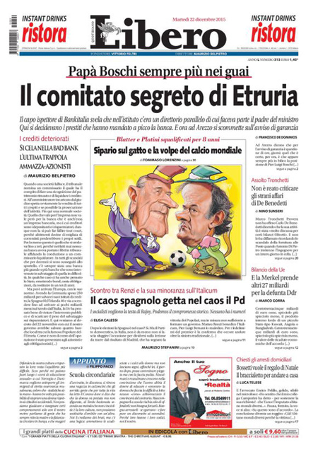 Altri giornali seguono sempre questa vicenda, ma concentrandosi sulle indagini giudiziarie, mentre il Manifesto commenta i risultati delle elezioni spagnole concentrandosi sul risultato positivo della sinistra di Podemos.