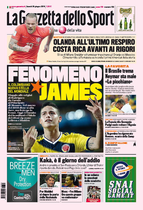 L’unico elemento comune nei quotidiani sembra essere il Mondiale di calcio, con le vittorie di Olanda (in rimonta sul Messico) e Costa Rica (ai rigori contro la Grecia).