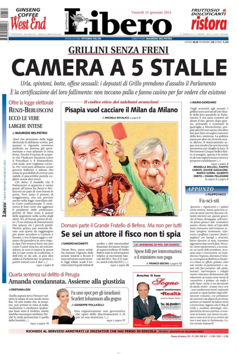 Non servono giri di parole per dire quel che il Movimento Cinque Stelle sta mettendo in scena alla Camera: roba da squadristi, al limite – se non oltre – del codice penale. E quanto all’atto d’accusa contro Napolitano, spero che nessuno si lasci ingannare: non c’entrano niente la voglia di cambiamento, la Costituzione e quelle balle lì. Siamo di fronte ad una strategia lucida ma disperata: tutta studiata a tavolino