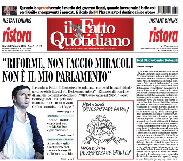 Il Fatto Quotidiano: “Renzi: Riforme, non faccio miracoli, non รจ il mio parlamento”.