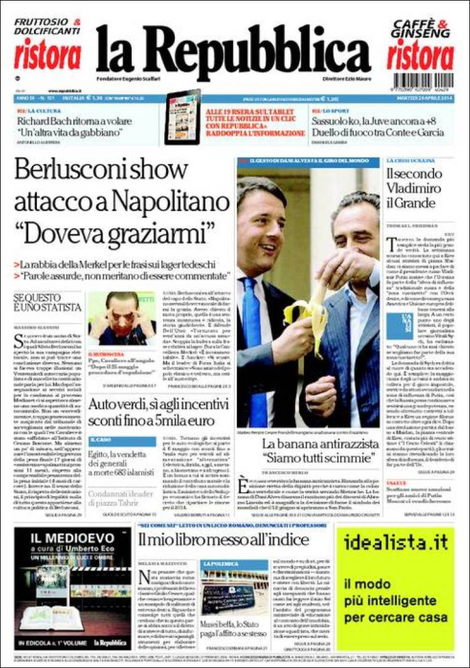 La prima pagina de La Repubblica: “Berlusconi show attacco a Napolitano: doveva graziarmi”.