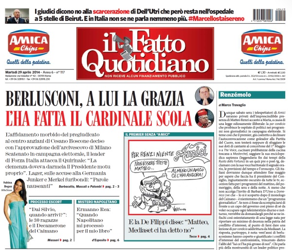 Il Fatto Quotidiano: “Berlusconi, a lui la grazia l’ha fatta il cardinale Scola”.