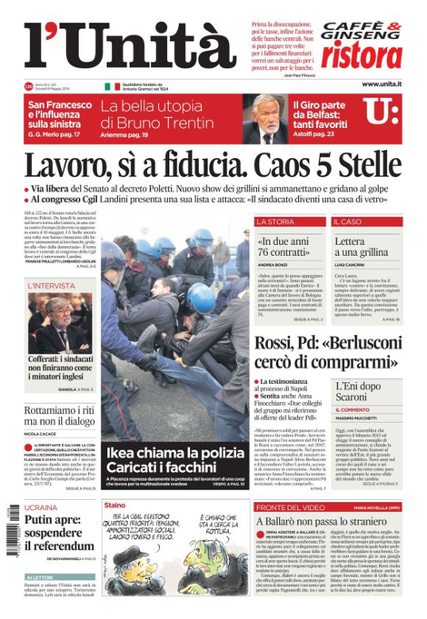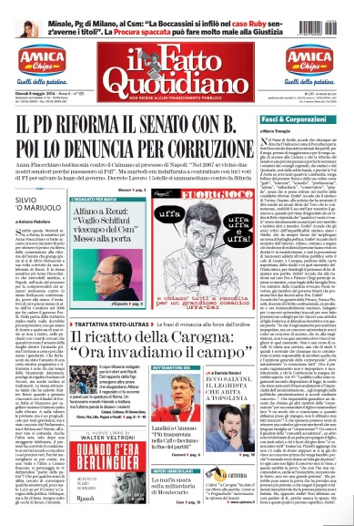 ROMA – Ecco le aperture dei quotidiani di oggi, giovedì 8 maggio 2014.