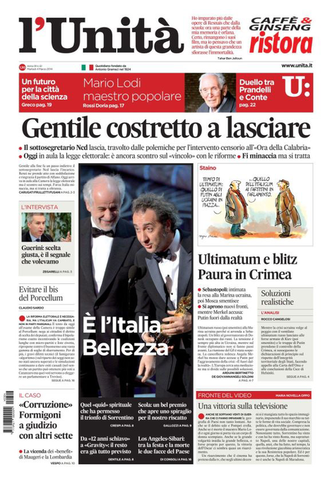 La Stampa: “Risolto il caso Gentile. Si complicano le riforme”.