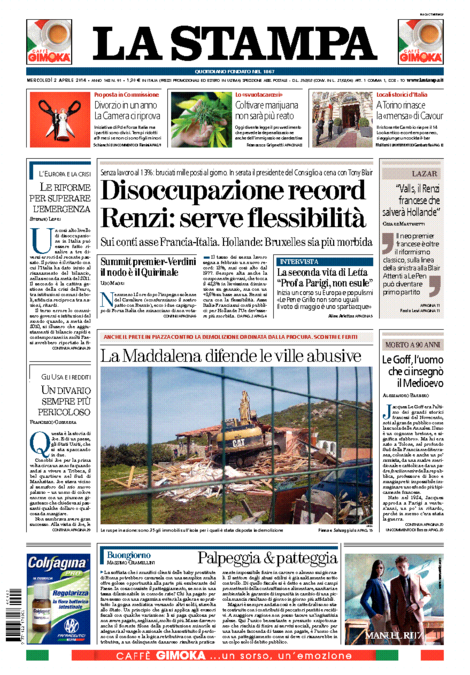 La Stampa: “Disoccupazione record. Renzi: serve flessibilitร ”.