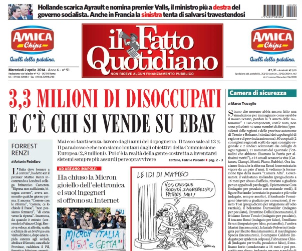 Il Fatto Quotidiano: “3.3 milioni di disoccupati. E c’รจ chi si vende su eBay”.