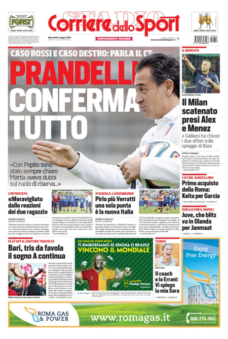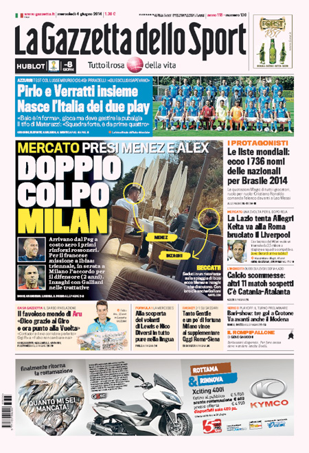 Sui quotidiani sportivi invece si alternano notizie sul calciomercato e sul Mondiale che avrà inizio il 12 giugno.