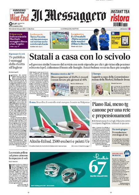 Il Messaggero si occupa invece di un piano allo studio di prepensionamenti per i dipendenti statali mentre il Giornale e l’Unità seguono ancora lo sciopero della Rai.