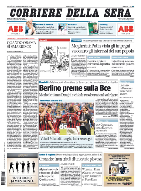 Il Corriere della Sera: “Berlino preme sulla Bce”. Quando Obama si smarrisce, editoriale di Angelo Panebianco: