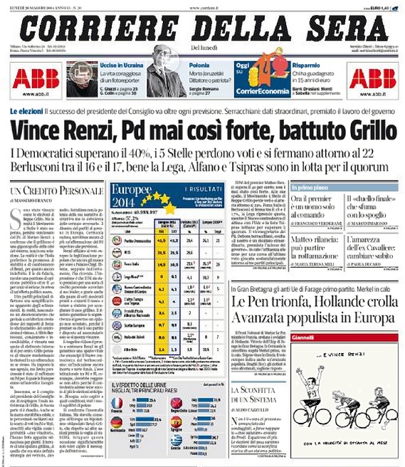 Il Corriere della Sera: “Vince Renzi, Pd mai così forte, battuto Grillo”. Un credito personale. Editoriale di Massimo Franco:
