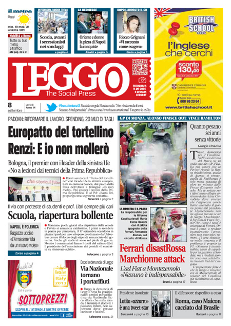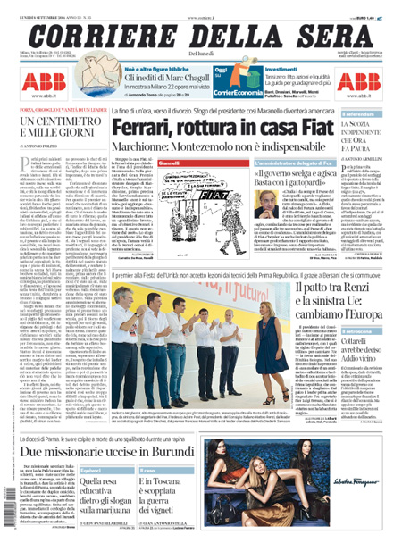Il Corriere della Sera: “Ferrari, rottura in casa Fiat”. Un centimetro e mille giorni, editoriale di Antonio Polito: