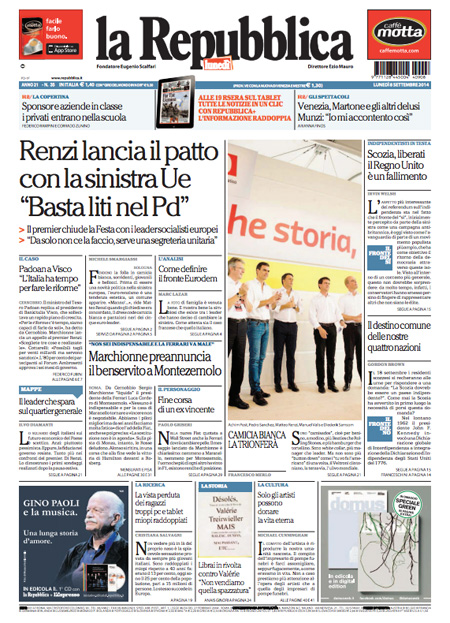 La Repubblica: “Renzi lancia il patto con la sinistra Ue”.