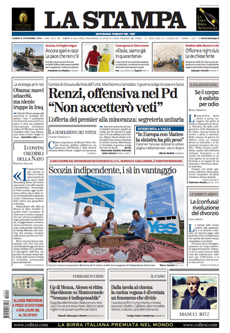 La Stampa: “Renzi, offensiva nel Pd”.
