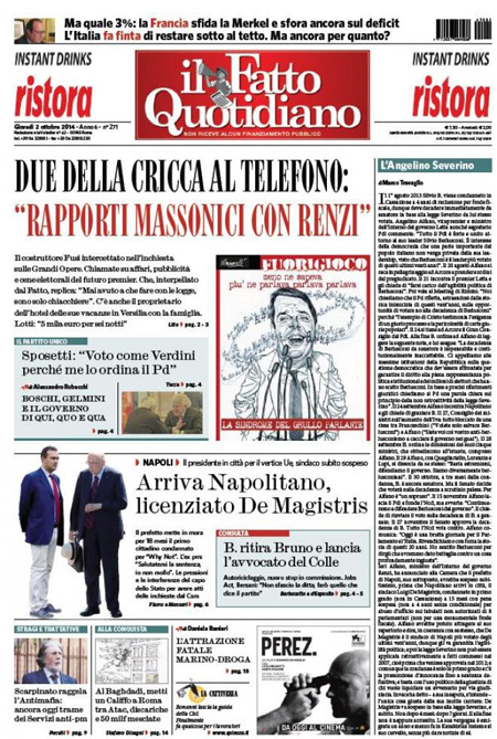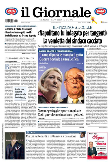 Il Giornale: “Napolitano fu indagato per tangenti: la vendetta del sindaco cacciato”.