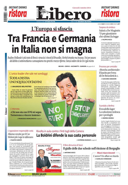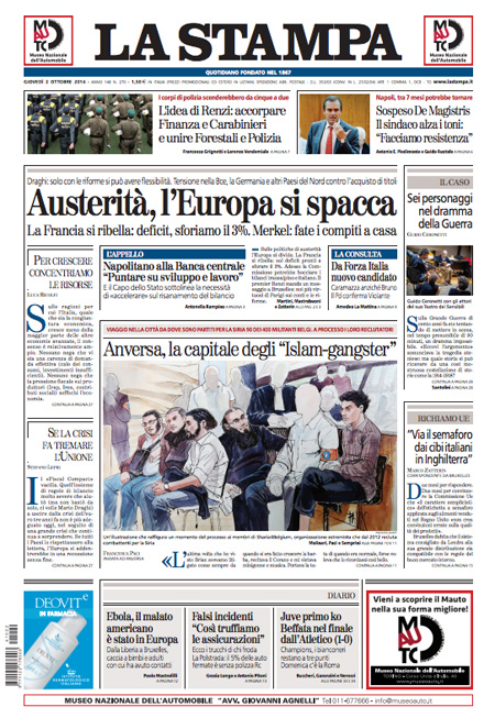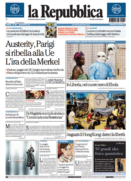 La Repubblica: “Austerity, Parigi si ribella all’Ue. L’ira della Merkel”.