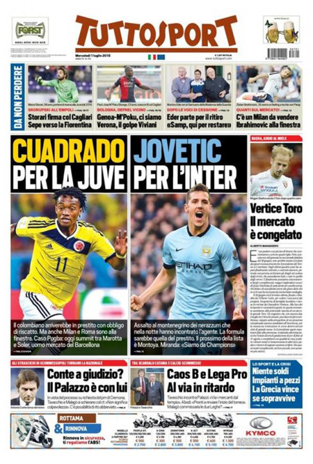 Sui giornali sportivi si continua a parlare di calciomercato, con i nuovi possibili acquisti di Inter, Milan e Juventus.