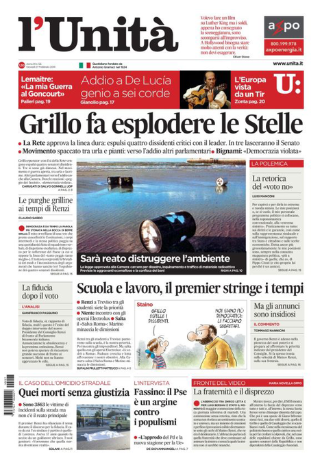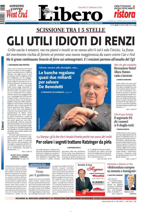 Il Corriere della Sera: “Il movimento di Grillo nel caos”. I conti in tasca al piano di Renzi. Editoriale di Enrico Marro: