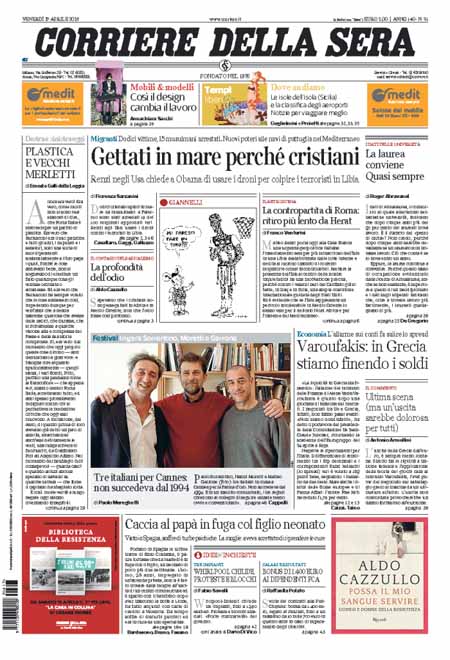 ROMA – Le prime pagine dei giornali di venerdì 17 aprile. Il Corriere della Sera: “Gettati in mare perché cristiani”. La Repubblica: “L’offerta di Renzi ai ribelli del Pd: sì al Senato elettivo”. La Stampa: “Barconi, l’ultimo orrore”.