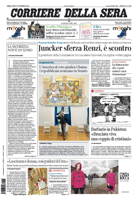 Il Corriere della Sera: “Juncker sferze Renzi, รจ scontro”.