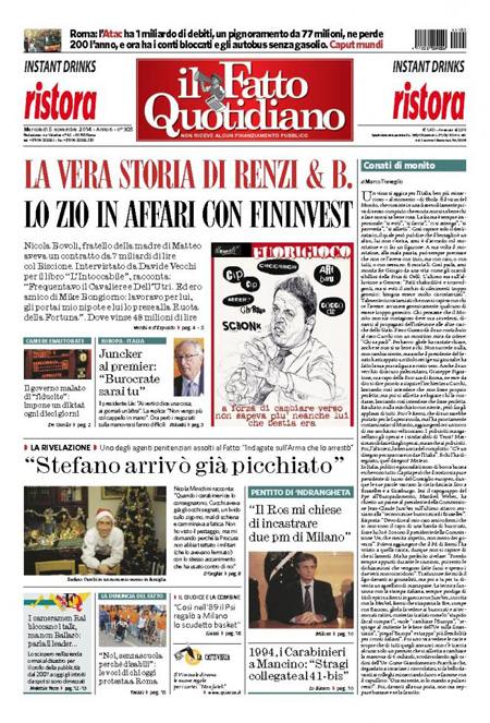 Il Fatto Quotidiano: “La vera storia di Renzi e Berlusconi. Lo zio in affari con Fininvest”.
