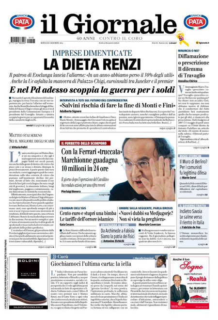 Il Giornale: “Imprese dimenticate, la dieta di Renzi”.