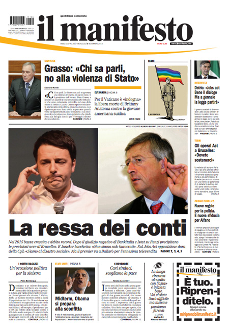ROMA – I giornali del 5 novembre hanno aperto tutti con lo scontro tra Juncker e Renzi. Il presidente della Commissione europea aveva detto: โA Matteo Renzi dico che non sono il capo di una banda di burocrati: sono il presidente della Commissione Ue, istituzione che merita rispetto, non meno legittimata dei governiโ. Juncker replicava a Renzi che aveva criticato lโeccessiva burocratizzazione dellโEuropa.