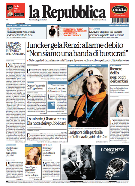La Repubblica: “Juncker gela Renzi: allarme debito”.