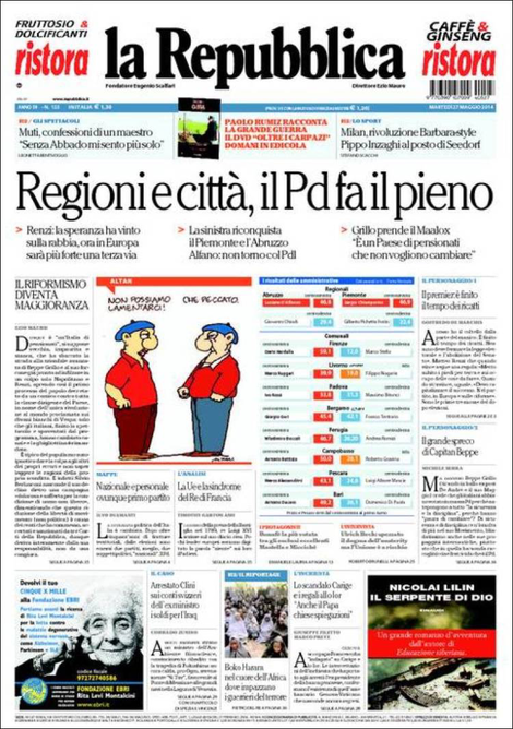 Ma la pancia di una certa Italia lo vede e lo sente come il nuovo Berlusconi, cioè come il nuovo messia, il salvatore della patria, il populista ridens con il sole in tasca e 80 euro in mano, l’uomo solo al comando nelle cui braccia gettarsi e del cui verbo ubriacarsi, un po ’ per speranza un po ’ per disperazione. Un Berluschino un po ’ allergico ai controlli, alle critiche e ai sindacati, con qualche conflitto d’interessi fra gli amici, ma molto più giovane e meno ideologicamente connotato, più sbiadito e gelatinoso, dunque più trasversale. In una parola: democristiano. In senso tecnico, non deteriore. Bisogna infatti risalire agli anni 50, cioè all’apogeo del centrismo, per trovare un partito – la Dc – sopra il 40 %. Anche allora pochi dichiaravano di votarla, ma la votavano in tanti. Un partito-contenitore, un grande sughero galleggiante che ospitava a bordo tutto e il contrario di tutto, e lasciava fare a ciascuno i suoi comodi. Prospettiva molto più comoda e accattivante della quaresimale austerità berlingueriana, incautamente evocata da Grillo e Casaleggio nel paese del Carnevale perpetuo, anche quando non c’è nulla da ridere.