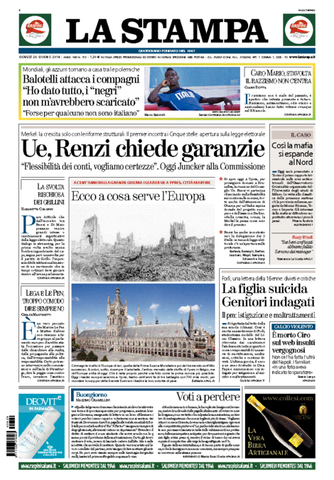 In o a fondo? “Non voglio essere una star, ma un Campione del mondo. In Brasile è scattato qualcosa in me. Guardo le altre gare per divertirmi, non mi interessa chi può andare in fondo: conta solo che in finale ci sia l’Italia” (Mario Balotelli, Repubblica, 20-6).
