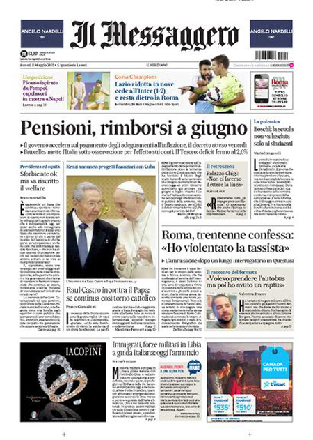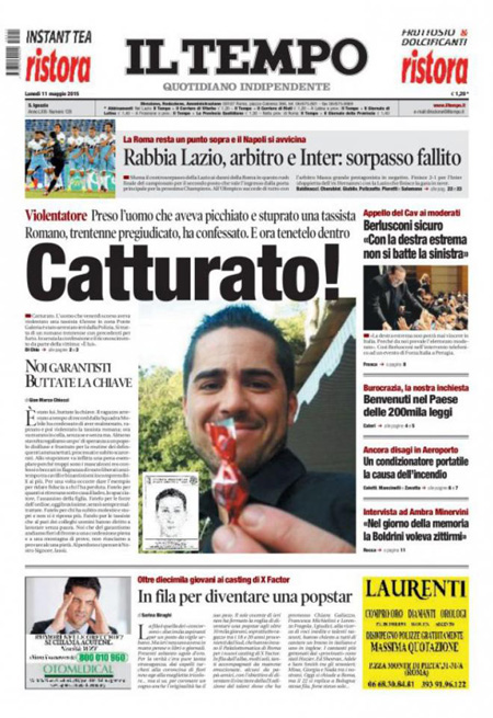 Il Giornale: “Renzi si tiene le pensioni”. Il Tempo: “Catturato! Preso l’uomo che aveva picchiato e stuprato una tassista”.