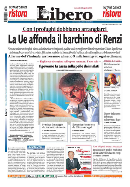 ROMA – Le prime pagine dei giornali di venerdì 24 aprile. La Stampa: “Una flotta europea per rafforzare Triton. Rifugiati, niente intesa”. Il Corriere della Sera: “Italiano ucciso, le scuse di Obama”. La Repubblica: “Mattarella: il 25 aprile patrimonio di tutto il Paese”.