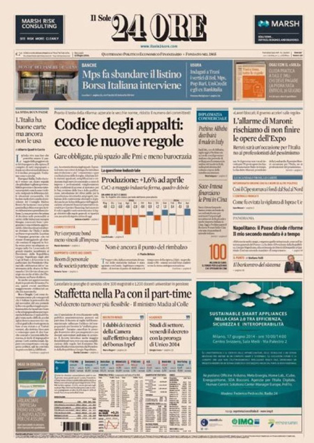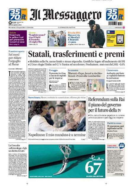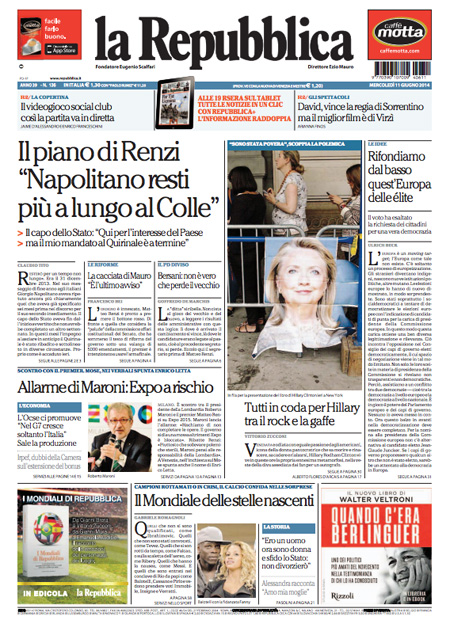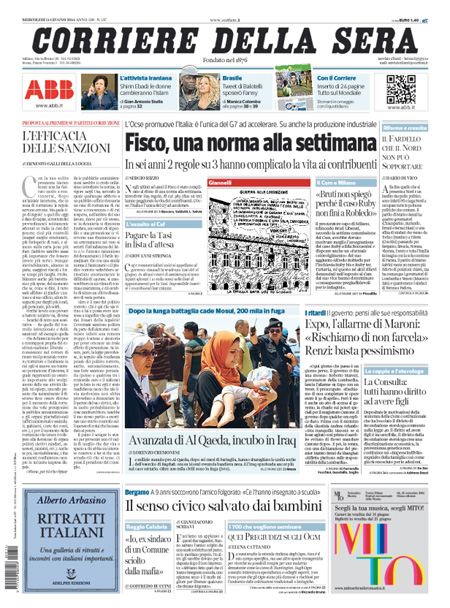In apertura sul Corriere della Sera, la riforma dei dipendenti della pubblica amministrazione, sulla quale titola il Messaggero, le tensioni in Iraq dove i fondamentalisti hanno occupato la città di Mosul.