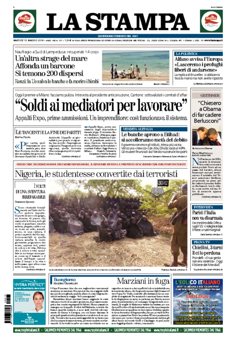 ROMA – Le ragazze sequestrate dal gruppo terrorista islamista Boko Haram in Nigeria sono sulle prime pagine di molti quotidiani di oggi 13 maggio.