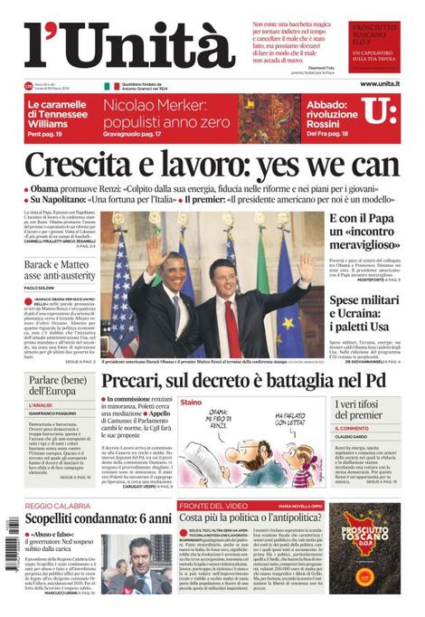 Il Corriere della Sera: “L’incoraggiamento di Obama all’Italia”. L’altro prezzo della fiducia. Editoriale di Massimo Gaggi: