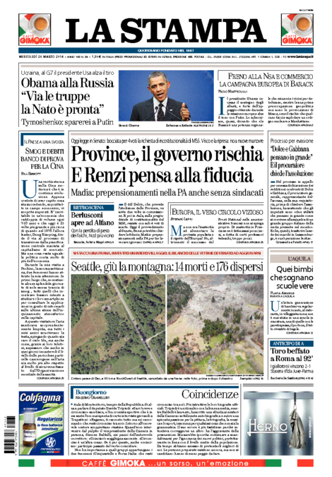 La Stampa: “Province, il governo rischia. E Renzi pensa alla fiducia”.