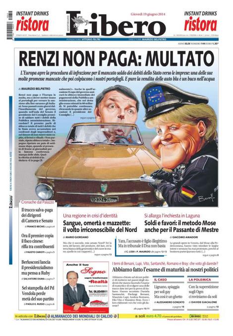 ร il giorno di Berlusconi. ร il suo ยซio ci sonoยป. ร la conferma del patto con Renzi sulle riforme. I dubbi, le incertezze, il rischio che tutto salti sembra spazzato via. ยซNon ti fidare di Grilloยป. Berlusconi รจ voluto tornare a Montecitorio per chiarire la posizione di Forยญza Italia. Sul piatto cโรจ il sogno del sistema presidenziale, ma questo non cambia le carte in taยญvola. Il patto del Nazareno non รจ tramontato. E Renzi risponde: siamo a un passo dalla chiusuยญra. ร fatta. Tutto questo avviene mentre sul fronte europeo Antonio Tajani, commissario Ue uscenยญte, viene accusato dal governo italiano di alto tradimento. La storia.LโEuropa apre una proceยญdura di infrazione contro lโItaยญlia. Il motivo รจ uno dei piรน seri che ci possa essere. Piรน serio anยญche delle riforme istituzionali. Lo Stato non paga i debiti che ha con le aziende. ร, per essere chiari, un cattivo pagatore. Non rispetta i contratti. Non รจ affidaยญbile. Pensate al contrario. Se il privato non paga lo Stato รจ un delinquente. Se รจ lo Stato, silenยญzio. Tajani secondo il governo ha la grave colpa di aver fatto il suo dovere. Ha tutelato le azienยญde italiane che si barcamenano per sopravvivere. Il ministro dellโEconomia Padoan punta lโindice.Si scandalizza e con lui tutta la maggioranza indignata e offesa.ยซร un atto di irresponsaยญbilitร contro lโItalia ยป. Il governo dice che sta pagando. Il probleยญma รจ che non basta. La direttiva europea prevede 30 al massimo 60 giorni.LโItalia continua a paยญgare a 210 giorni. La differenza รจ quella che passa tra la vita e la morte di unโazienda.