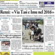 ROMA – I giornali di oggi, 26 agosto, aprono riportando le dichiarazioni di Matteo Renzi fatte durante il suo discorso al Meeting di Comunione e Liberazione a Rimini: in particolare la cosa che ha attirato l’attenzione dei giornali è la promessa di Renzi di abolire la Tasi e l’Imu a partire dal 2016, promessa che per la verità era già stata fatta lo scorso luglio.