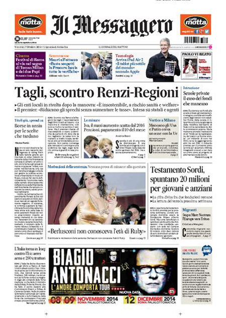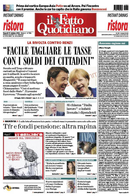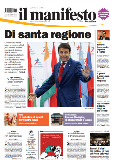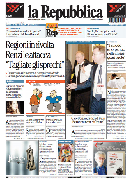 La Repubblica: “Regioni in rivolta. Renzi le attacca: Tagliate gli sprechi”.