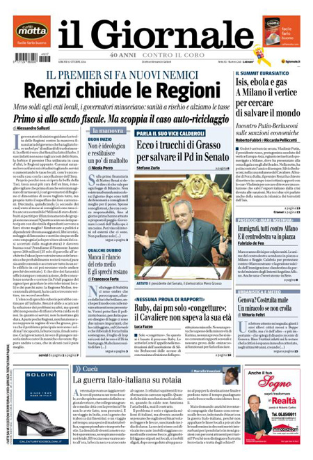 Il Giornale: “Renzi chiude le Regioni”.