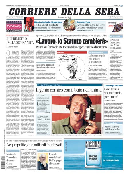 Il Corriere della Sera: “Lavoro, lo Statuto cambierà”. Il premier della sovranità, editoriale di Antonio Polito: